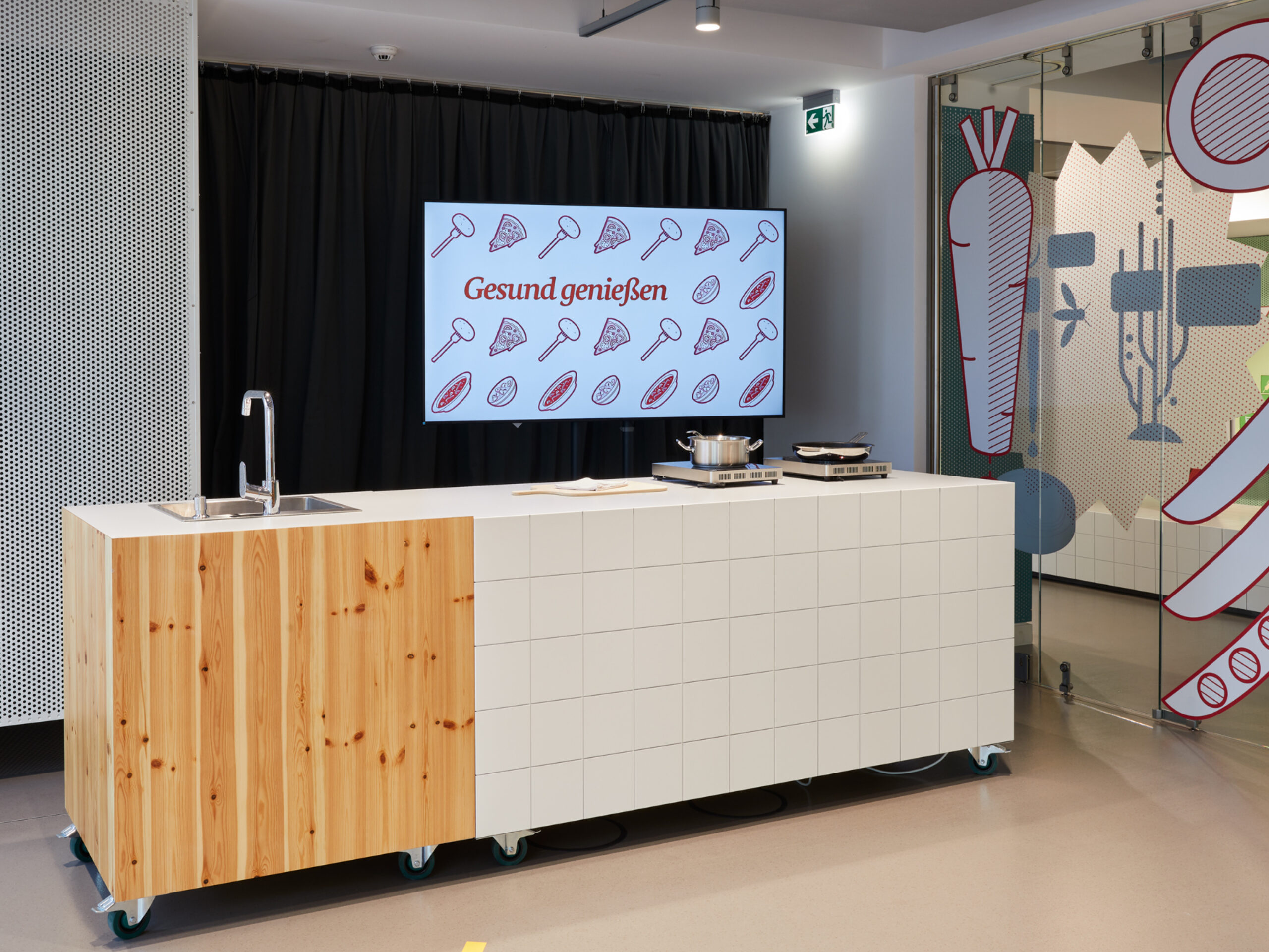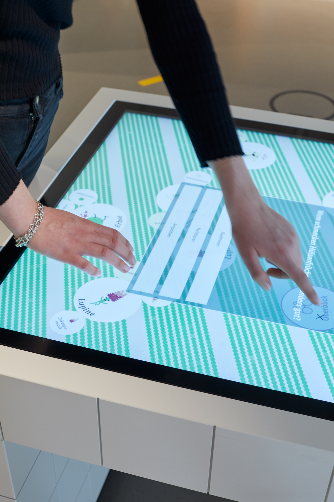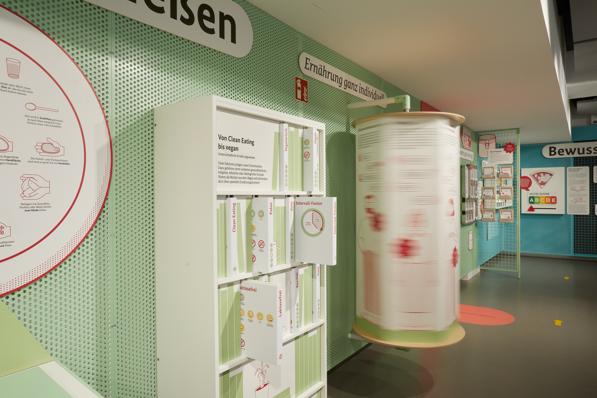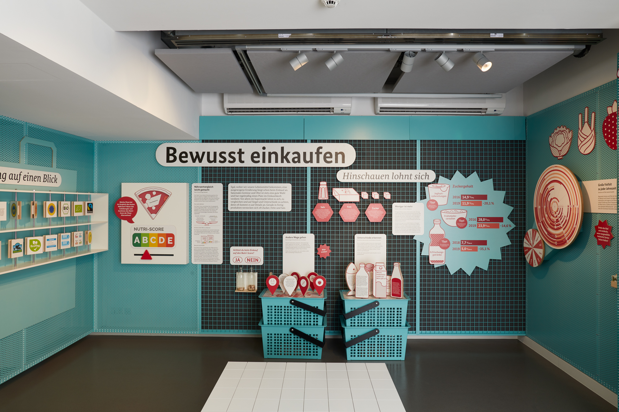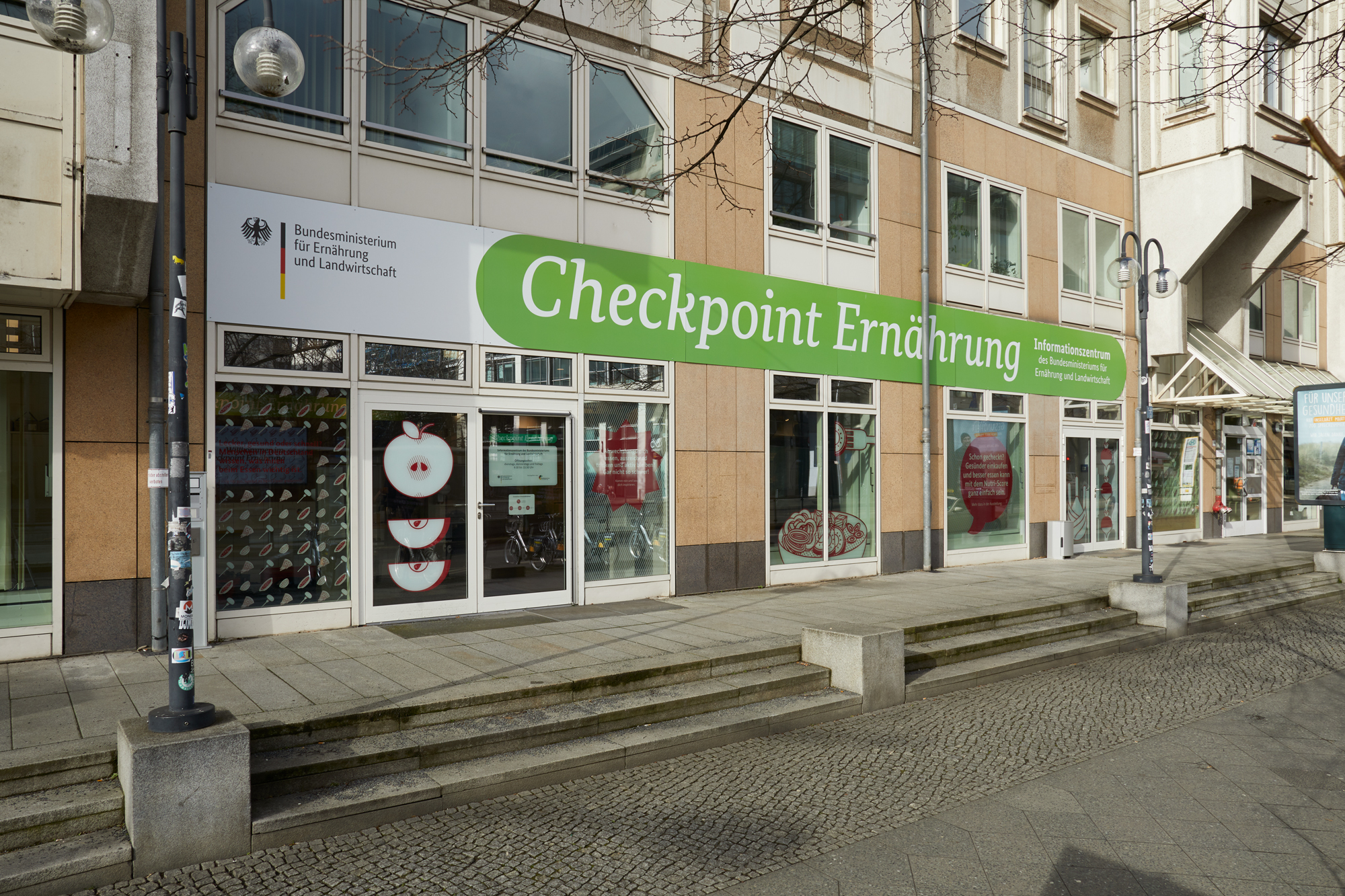 Erzeugen, einkaufen, lagern, zubereiten, genießen: Der „Checkpoint Ernährung“ war das Informationszentrum rund um’s Essen – mitten in der Berliner Friedrichstraße. Die interaktive Ausstellung lud mit anschaulichen Grafiken und vielfältigen Exponaten zu einer Entdeckungstour durch Einkaufskörbe, Kochtöpfe und Lieblingsspeisen ein. Die einzelnen Stationen regten spielerisch dazu an, das eigene Essverhalten zu reflektieren und vermittelten praxisnahe Tipps für eine nachhaltige, gesundheitsförderliche und zugleich genussvolle Ernährung. Zielgruppen waren Schulklassen, Wahlkreisgruppen sowie interessierte Bürgerinnen und Bürger. Auftraggeber war das damalige Bundesministerium für Ernährung und Landwirtschaft.