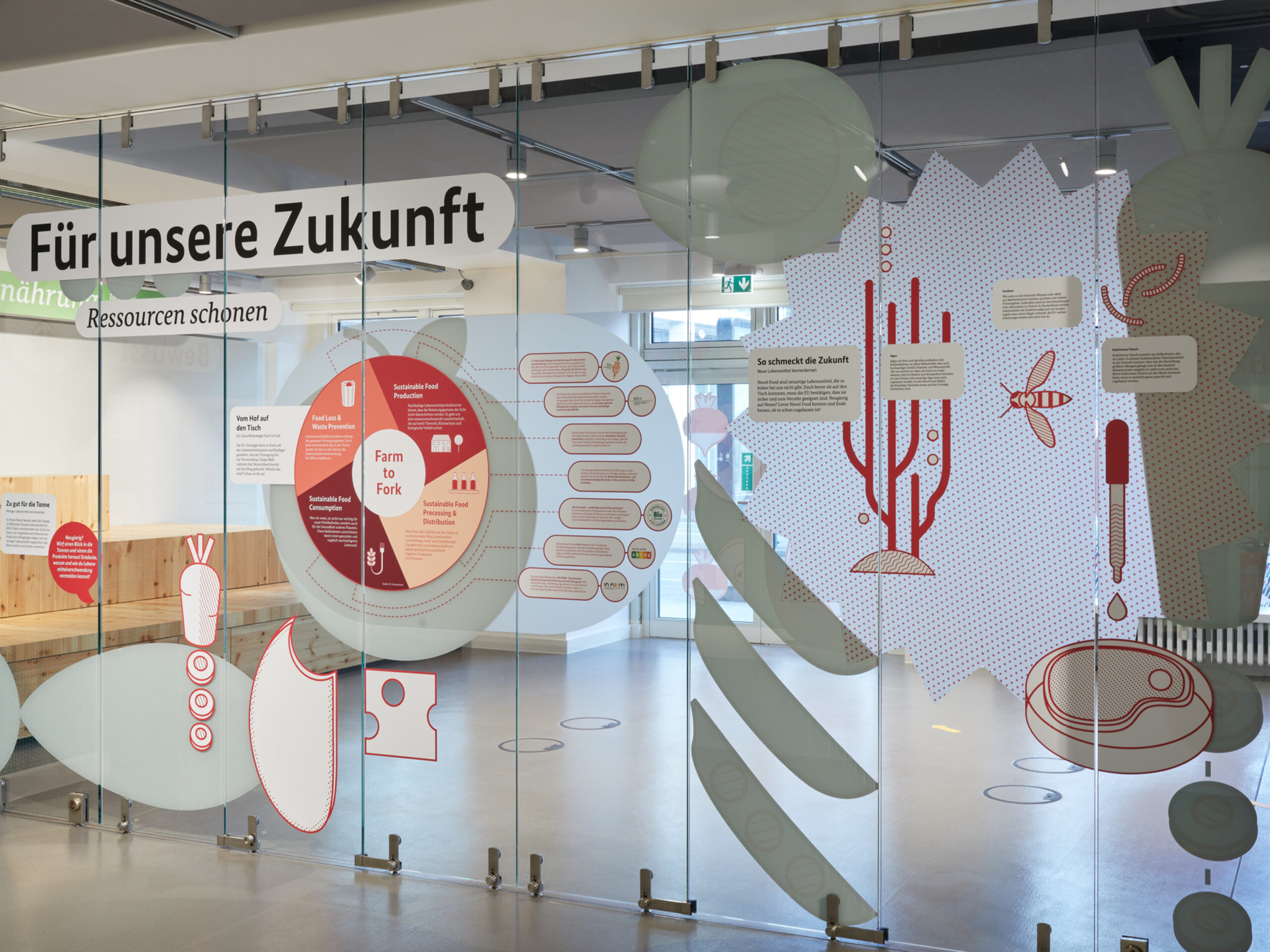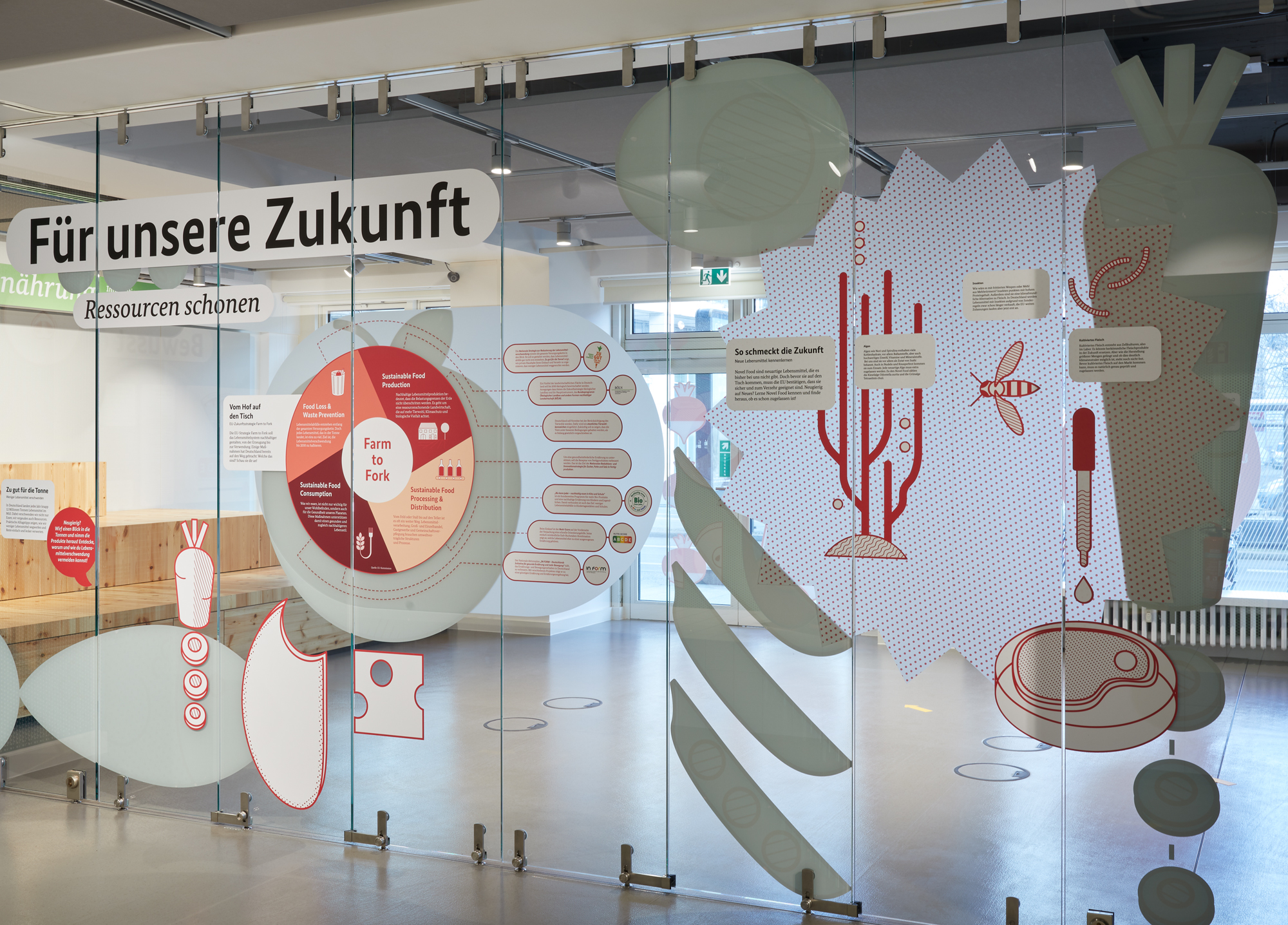 Zusammen mit unserer Partneragentur SIMPLE aus Köln waren wir verantwortlich für Idee, Konzeption, Text, Redaktion, Planung, Architektur, Design und Bau der 260 qm großen Ausstellung sowie für die hybride Eröffnung mit Bundeslandwirtschaftsministerin